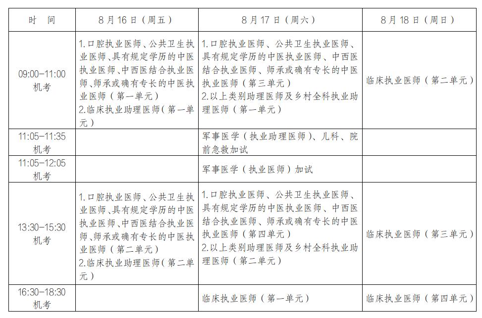 (二)民族医纸笔考试时间安排