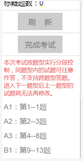 若本段内还有未答题,系统不允许进入下一段题型!!