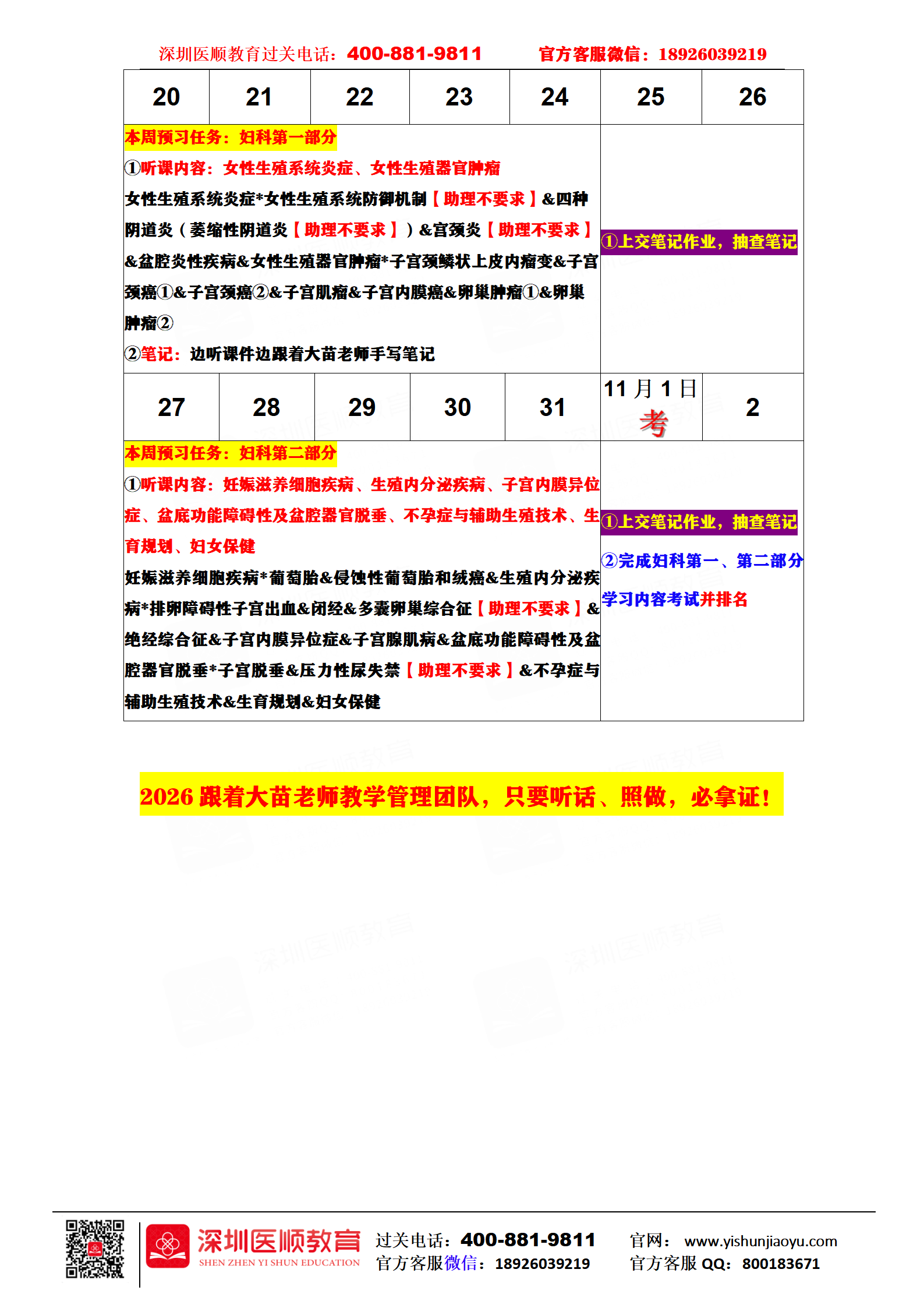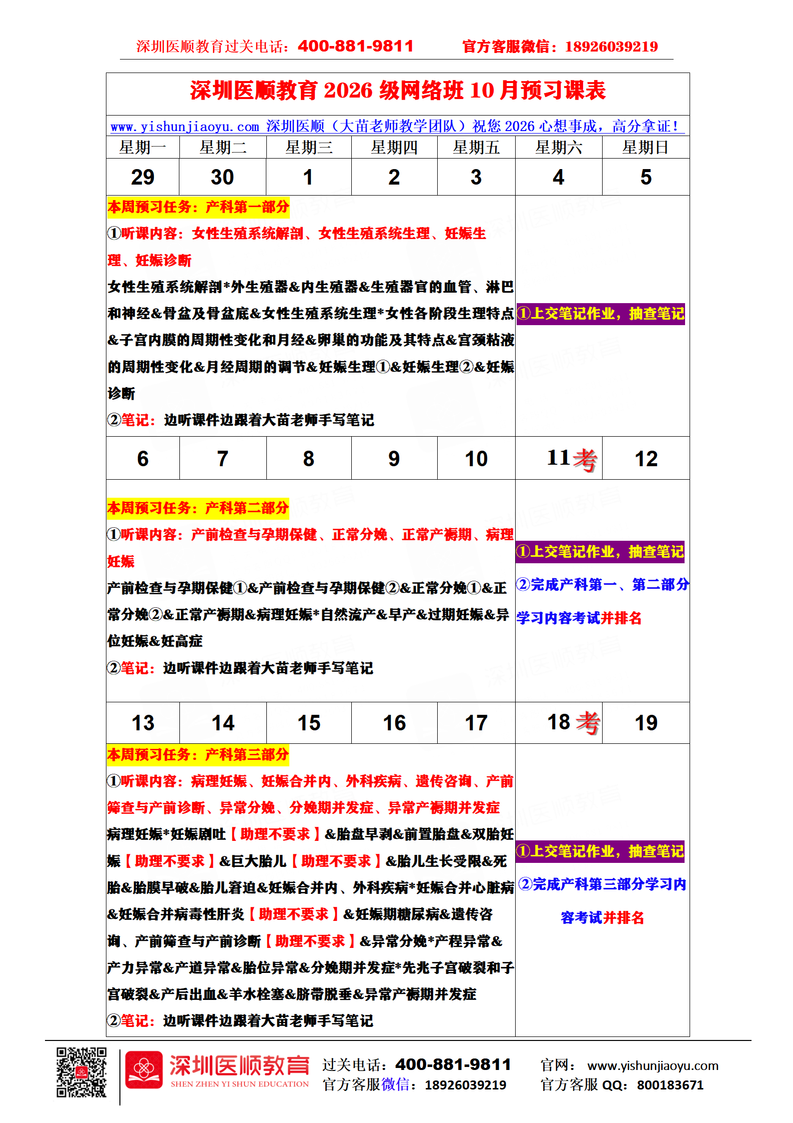 热烈欢迎您加入深圳医顺教育大苗老师教学管理团队,为确保2026顺利通关,让您提前赢在起跑线,请紧跟预习课表学习,做好听课/手写笔记/考试。