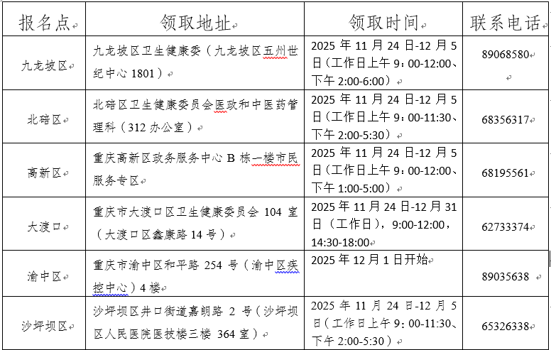 2025年医师资格考试(一试)资格证书已下发至考生报名填报单位所在报名点(不是沙坪坝考点),请考生到相应单位领取,领取地址见下表: