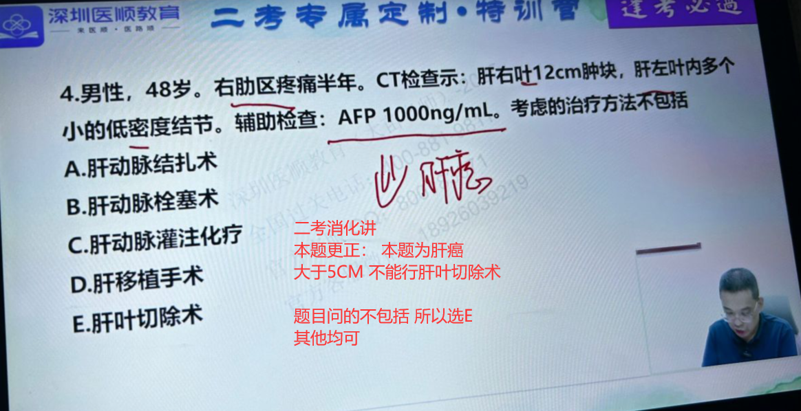 本题更正: 本题为肝癌大于5CM 不能行肝叶切除术