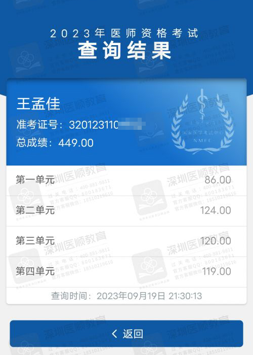 此次考试跟过山车一样,简直了,首先,学习环境问题,今年考试,家里破事特别多,要兼顾小孩,还有某些人找茬吵架,吵架影响心情,其次考试有失利,技能考试的时候,准备一个月,考试卡壳了,无人监考的那种,然后技能操作没做完,我都准备二进宫了,结果特别应大苗老师的话,前面考好,后面不做也能过。应该是多媒体和体格检查做的特别好,我技能过了。但是学习环境真的很差,天天生气,技能考完基本没学过,看不进去书,焦虑,真的之后了俩月没学进去,大庙老师说,人家抓住最后的半个月都能过,有人备考三个月,两个月,一个月,半个月都能过。我想我也得拼一把,我又报了一个刷题班,刷完题回来就背笔记,看串讲背串讲。每个人方法不一样,有些人需要刷题,我就得背,我背了心里就安心,背到考前一小时,去考试了。经过漫长的等待,终于等来了好的结果,真心谢谢大苗老师和所有老师和同学们一起陪伴学习。多谢大苗老师一次次的锦囊,一次次心里疏导。谢谢!!!