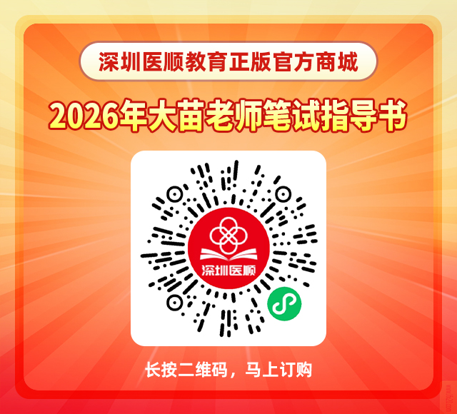 3.目前【2026年深圳医顺教育正版指导用书】正在教研优化,待2026年国家医考新大纲发布后做最后修订,确保学员在正式开课前能拿到配套指导用书。如有需要,请扫描下方二维码或联系客服老师进行购买。